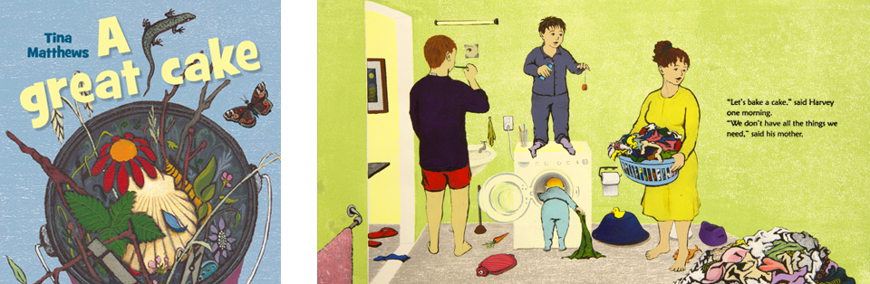 I loved writing and illustrating A Great Cake. It’s quite unlike my other books and has only 64 different words, most of those from a recipe which is repeated four times. That doesn’t sound like much of a story but, with the help of the pictures, a lot happens in the 32 pages and by the end of the book the reader knows all the characters pretty well. It’s a book about the pleasure of imaginative play. And, as the title suggests, it’s also a book about cake. More particularly, about how to make a cake and eat it with friends.